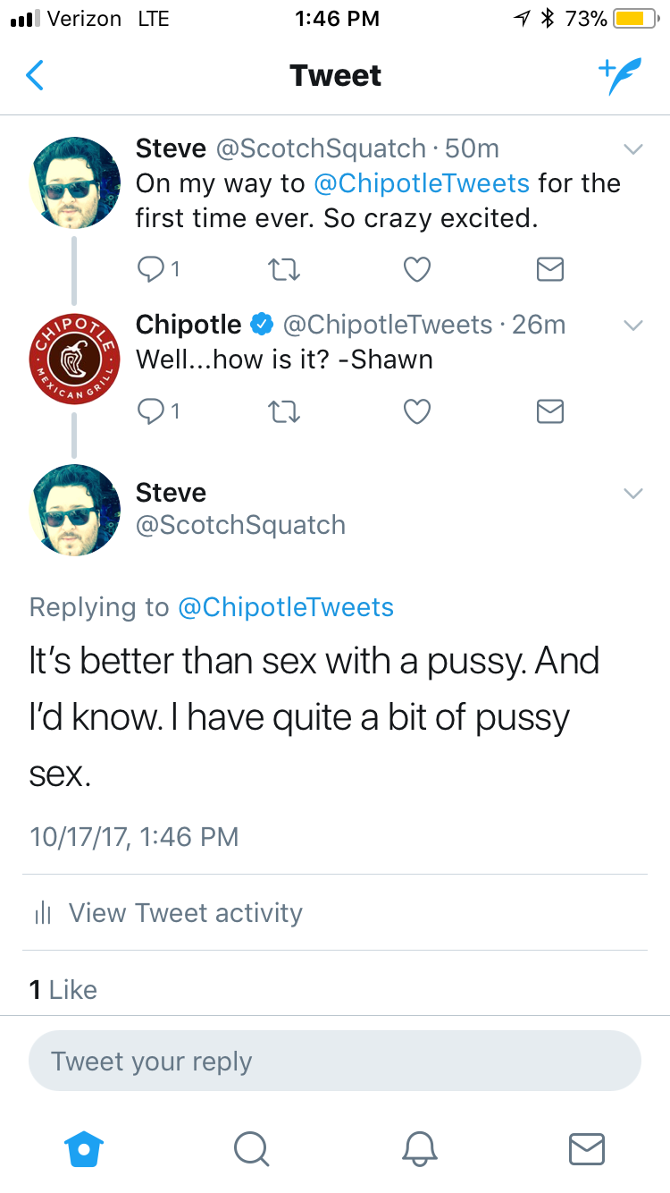 OK, enough boner talk, back to the meal. All in all I give Chipotle a 8.69 out of 11. Would definitely eat again. And much like anytime you have a great meal, it’s important to let the staff know: