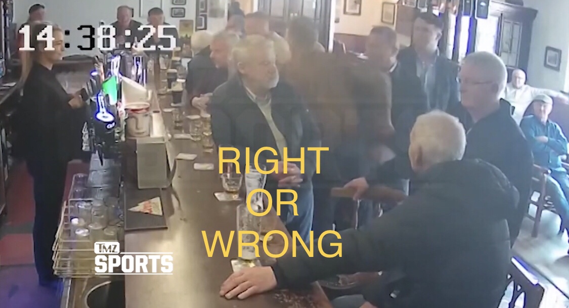 If this old guy didn’t want to get punched that bad he would have just taken the shot. Honestly, I wouldn’t be shocked if this guy gets kicked out of Ireland. Turning down a shot of Irish whisky is the least Irish thing an Irishman could do. That’d be like an Italian turning down a meatball. Or a Canadian saying no at a gloryhole. It simply doesn’t make sense!