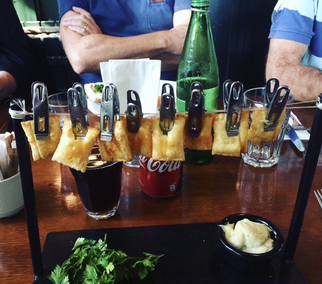 What I don’t love is the clothesline in my grandparents yard. And for good reason. That’s where my grandmas bras would live. That’s not where raviolis should live. I can’t believe I even have to say this. I do love that they just dumped a pile of parsley underneath the ravioli clothesline, what a garnish.