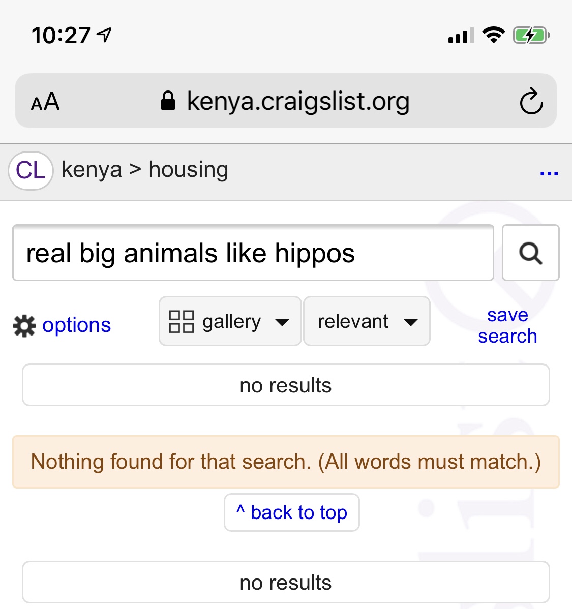 I hopped on Craigslist Kenya but much to my dismay, nothing came up. So I kept searching.