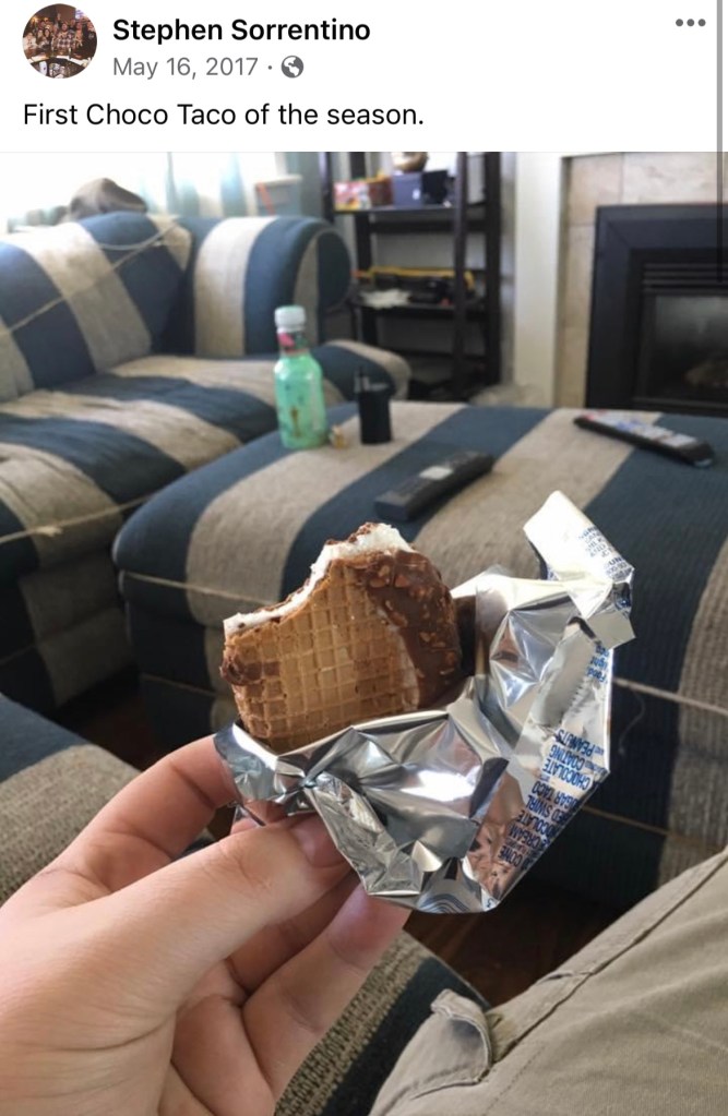 Here I am five years ago eating a Choco Taco in some nice cargo shorts, something else that was taken away from me.