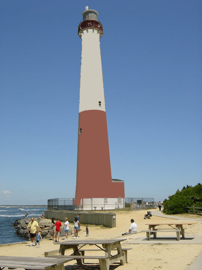 The final scaffolding has been removed from the Lighthouse this morning, revealing what will be referred to as the greatest tragedy this area has ever seen. The person in charge of painting the famous Barnegat Lighthouse accidentally flipped the paint scheme, painting red on the bottom and white on the top.