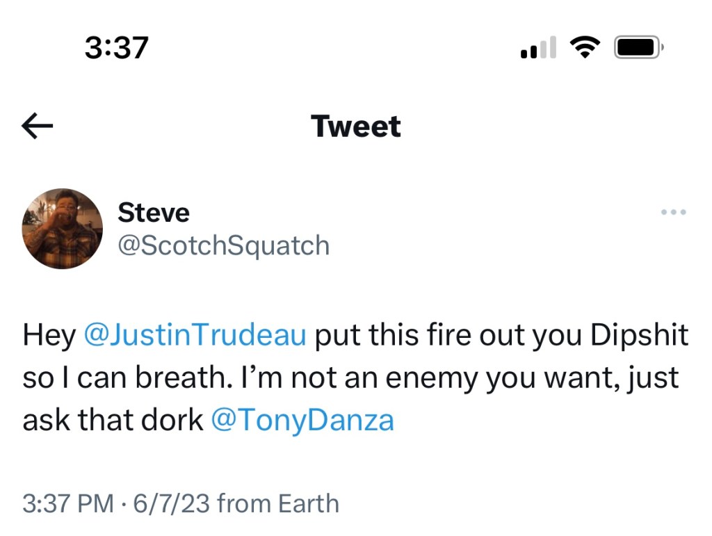 You guys know I don’t like making everything about me, but come on Canada, just put the fire out. I’ve got asthma and I want to go outside and smoke weed. This kind of childish behavior is exactly why we haven’t let you become a state yet.