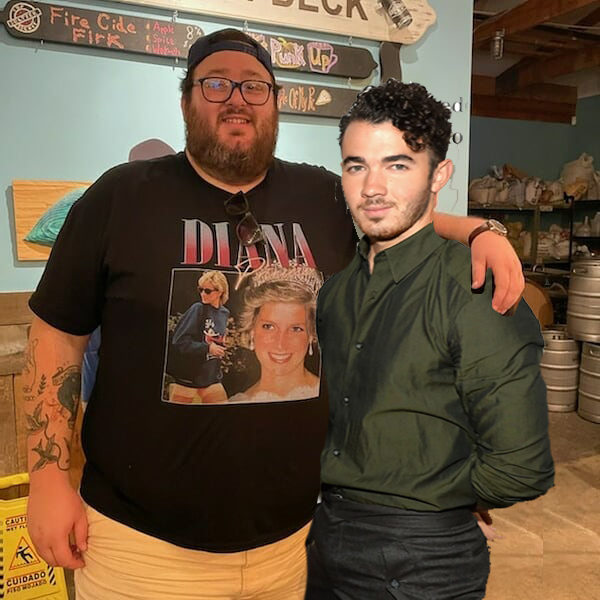 After that I invited him out with a bunch of my friends to grab dinner. One of my friends accidentally called him Nick, so she got banished to another table. Kev eventually felt bad for screaming at her in front of everyone, and he was kind enough to still let her take this picture with him.
