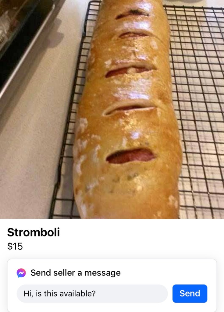 [Chefs Kiss] Mama Mia, what a good-looking Stromboli. I don’t even want to roast this because it looks good. But imagine having to explain to your significant other that you bought a Stromboli from some guy on Facebook Marketplace. I have to imagine it would go a little something like this: